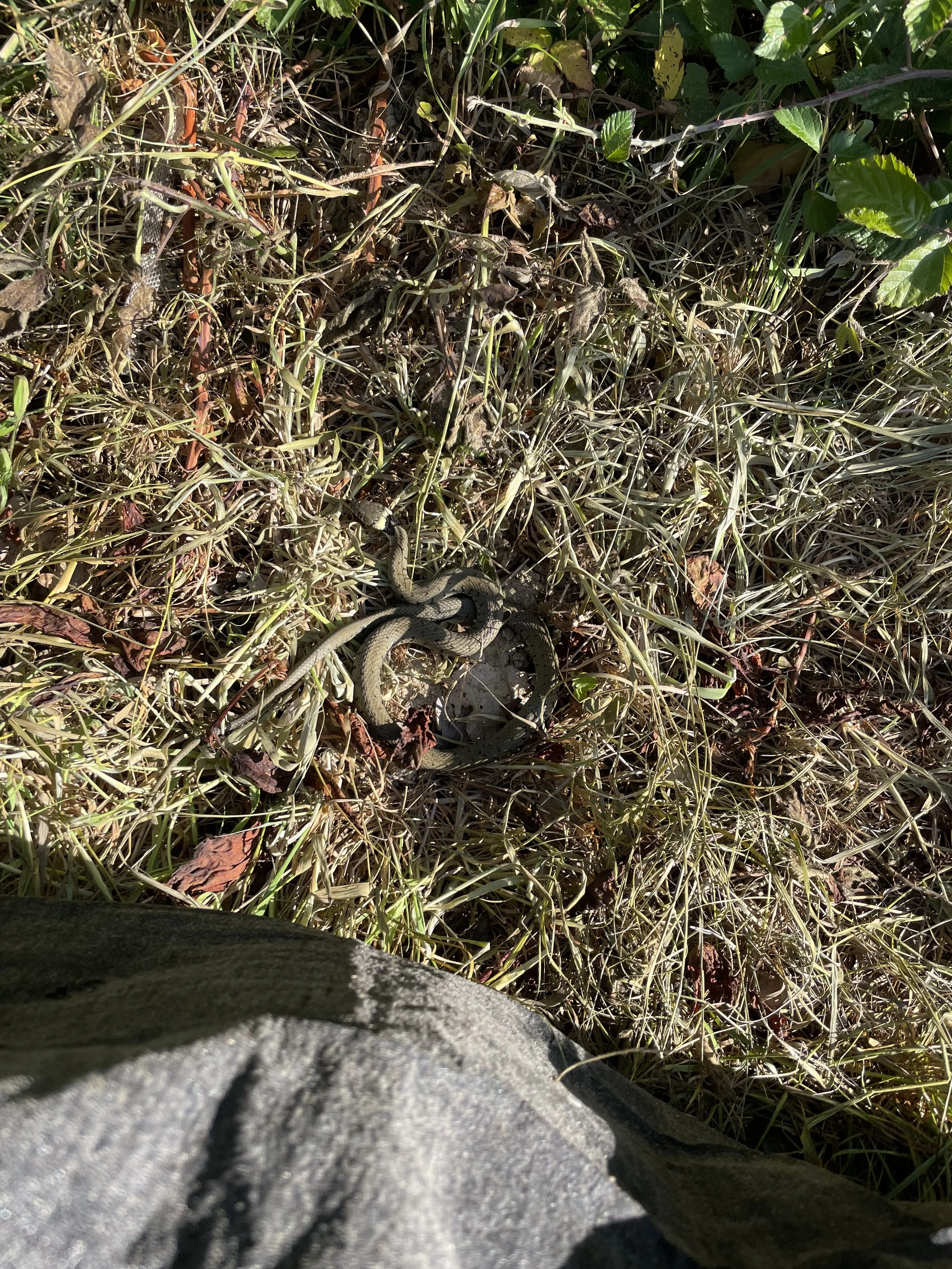 I have been really enjoying these reptile surveys as it has given me a great opportunity to see reptiles and identify them, and in my surveys so far I have found numerous grass snakes and slow worms. Grass snakes can be distinguished from an adder through their characteristic yellow/white and black striped band below their head, whereas adders generally display a diamond zig-zag pattern down their body. Male and female slow worms can often be distinguished apart since females characteristically have a dark black stripe running along their body, while males are often lighter in colour and can have blue spots. Getting to see so many individuals has been really valuable to learn identification and their ecology, as although I have seen slow worms previously, it is not common to see them in this abundance.